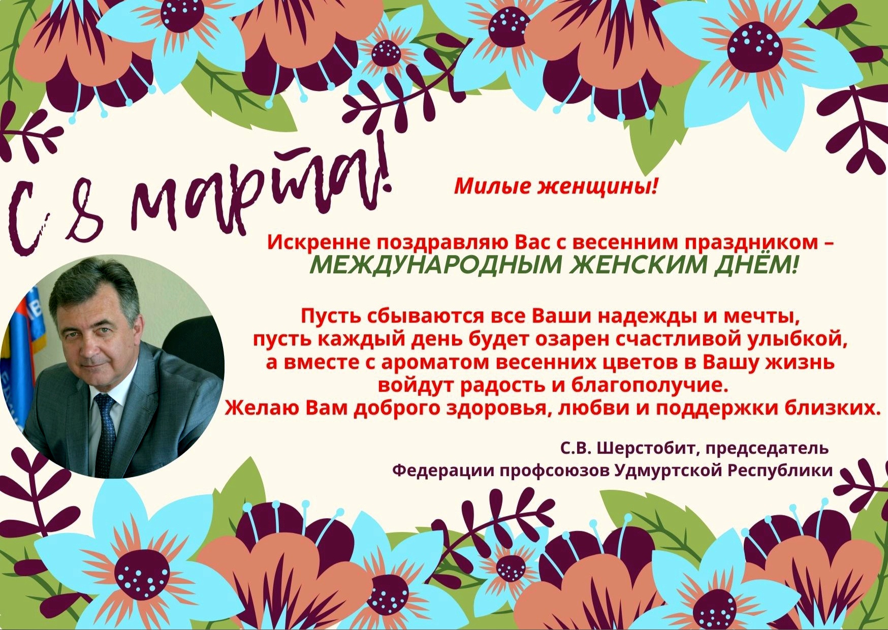 Искренне поздравляю Вас с весенним праздником –
