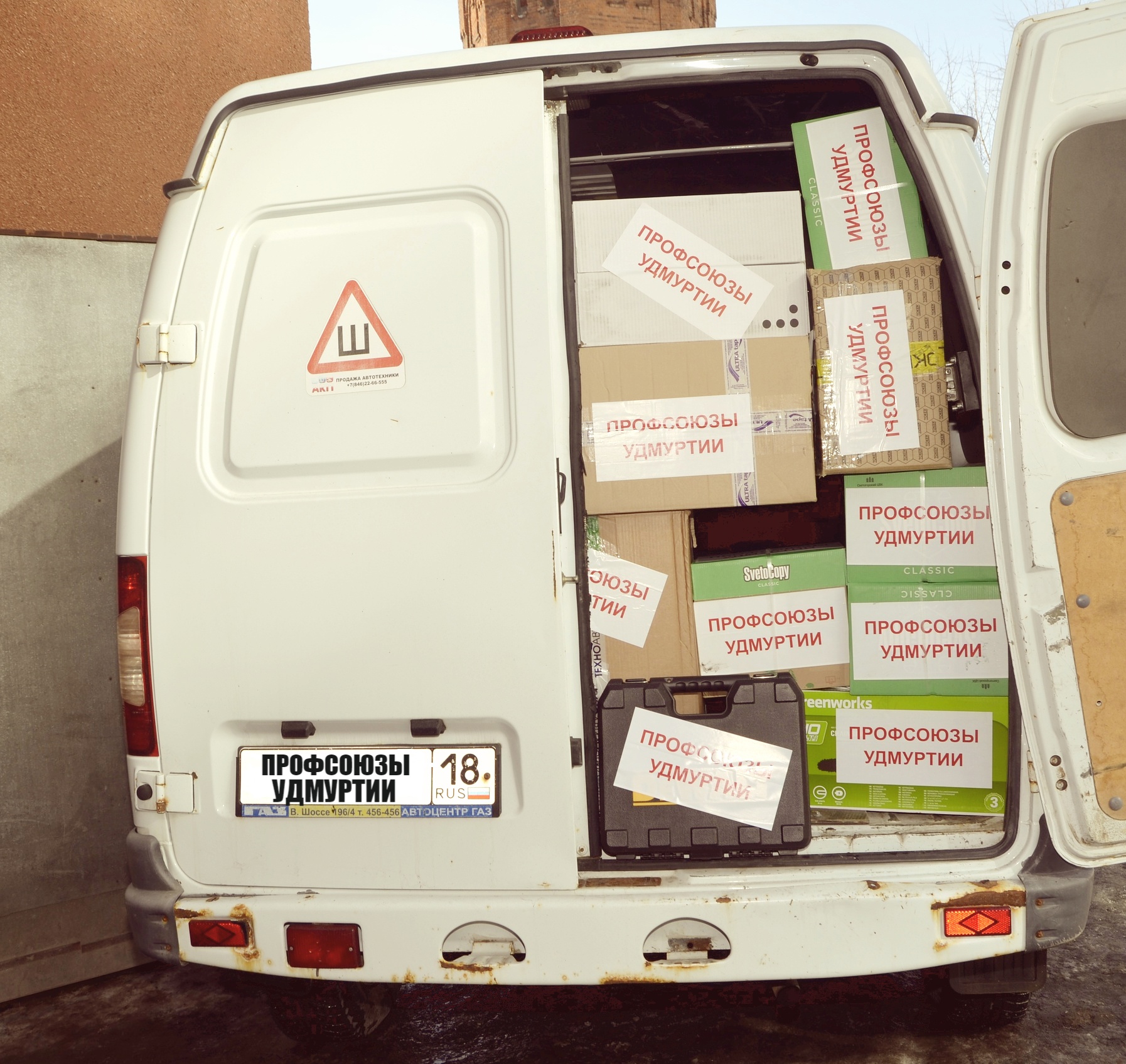 Солидарно профсоюзными организациями было собрано 350 тысяч рублей. На данные средства приобретены: электро-/бензопилы (доп. очки, масла, цепи), наборы инструмента для ремонта автомобильной техники, термобельё, аккумуляторный инструмент, сварочные аппараты (доп. маски, элек
