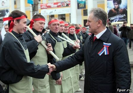 горожан встретили в колоннах своих