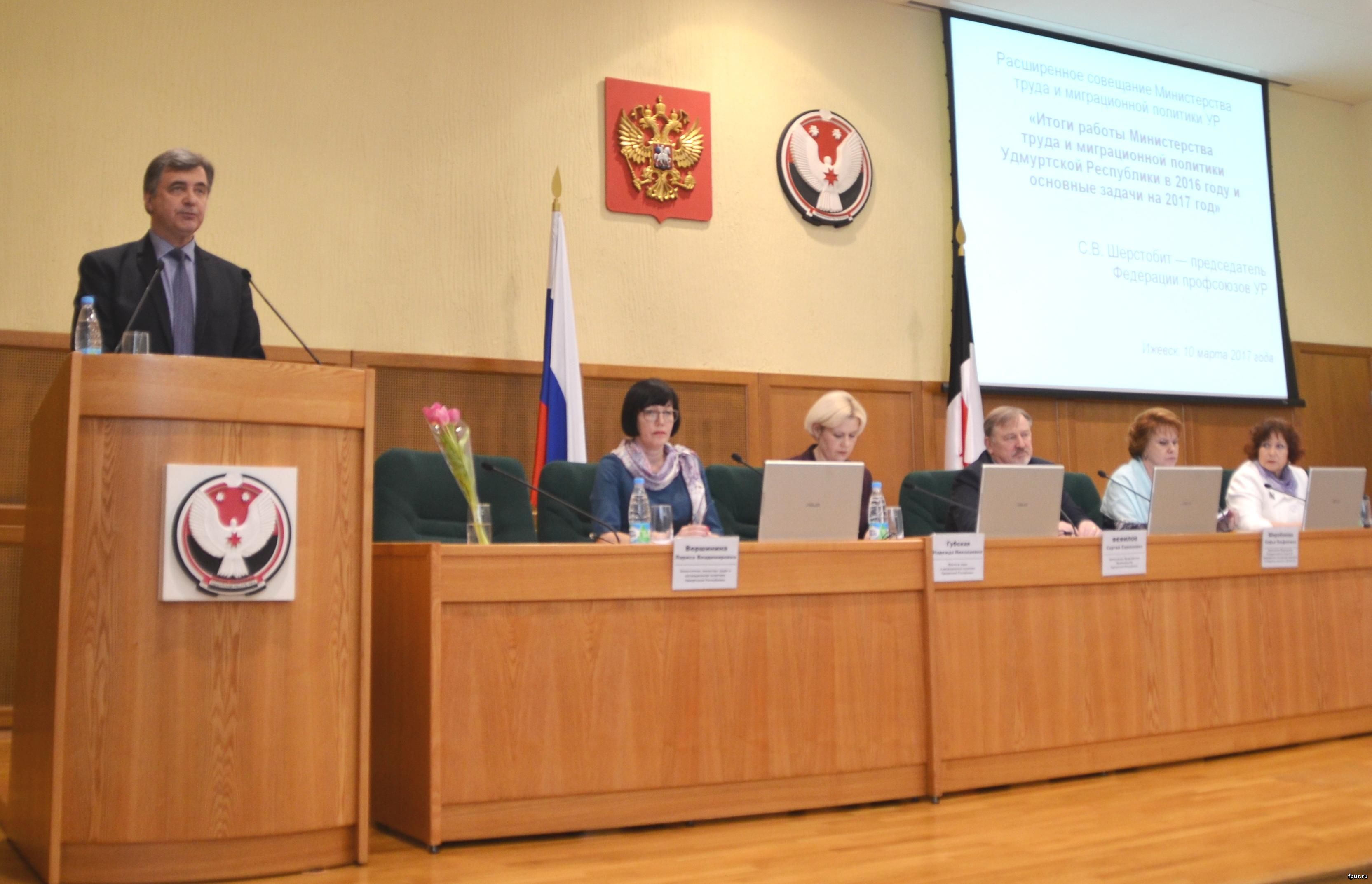 Председатель Федерации профсоюзов УР Сергей Шерстобит в своём выступлении рассказал о развитии социального партнёрства в республике, в том числе о работе территориальных трёхсторонних комиссий, поднял вопросы оплаты труда в различных секторах экономики. Руководитель Госинспекции труда в Удмуртской Республике Светлана Шекунова подвела итоги работы по надзору за исполнением трудового законодательства в 2016 году.