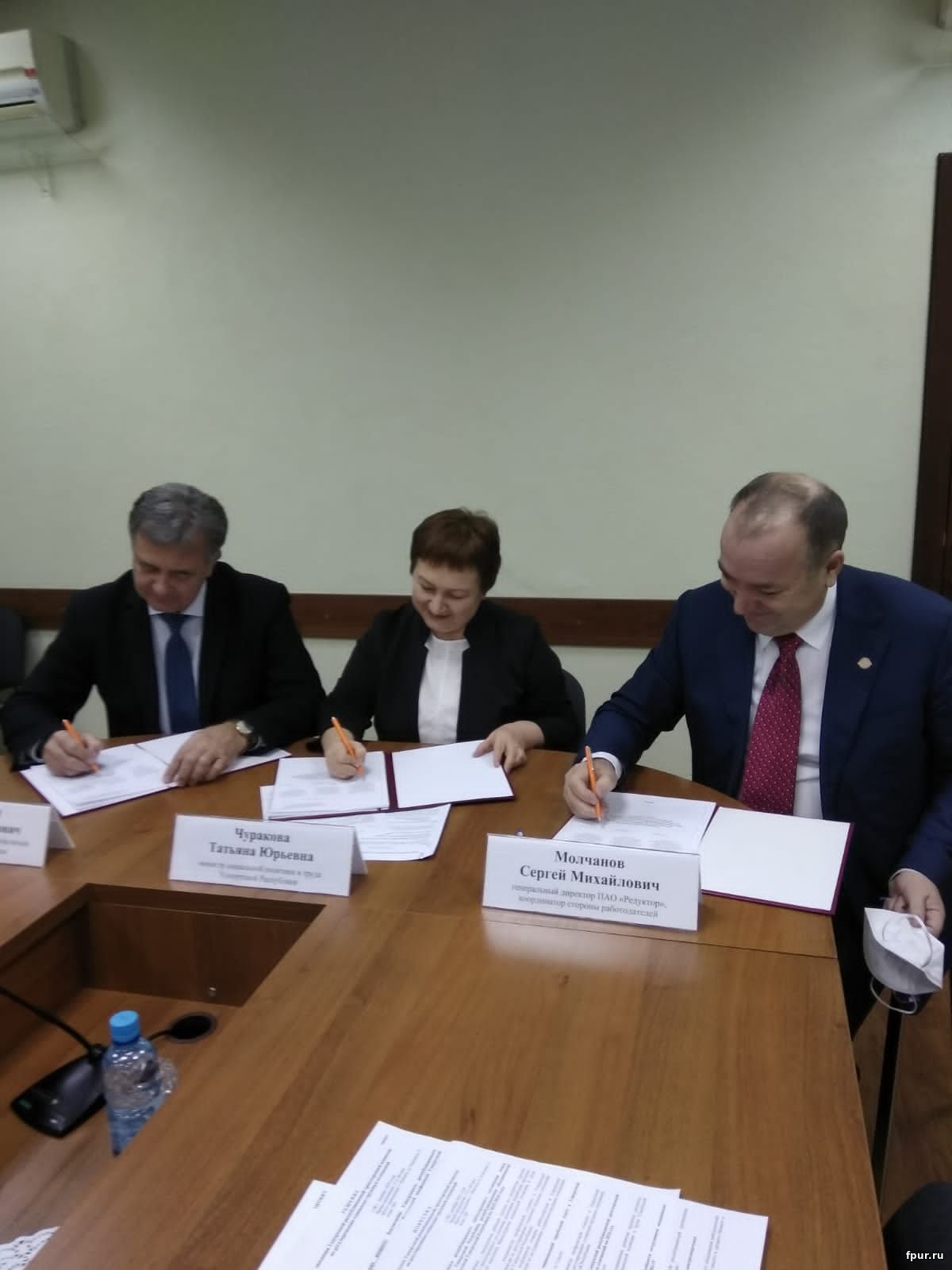 На состоявшемся 8 декабря заседании Удмуртской республиканской трёхсторонней комиссии (УРТК) по регулированию социально-трудовых отношений было заключено новое Республиканское трёхстороннее соглашение – на 2022-2024 годы. Его подписали координатор УРТК, заместитель председателя Правительства УР Анатолий Строков, координатор правительственной стороны, министр соцполитики и труда Татьяна Чуракова, координатор профсоюзной стороны, председатель Федерации профсоюзов УР Сергей Шерстобит и координатор стороны работодателей, генеральный директор АО «Редуктор» Сергей Молчанов.